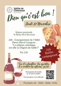Le principe est simple : enseignement d’1 heure dispensé par le Père Pierre-Hervé Grosjean sur le thème :