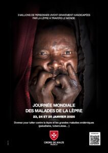 Comme chaque année, les bénévoles de l’Ordre de Malte vous solliciteront à la sortie des messes des 24 et 25 janvier à l’occasion de la Journée Mondiale des Malades de la Lèpre. Merci de votre générosité pour nous aider à vaincre la lèpre, maladie qui touche des personnes particulièrement pauvres et isolées.